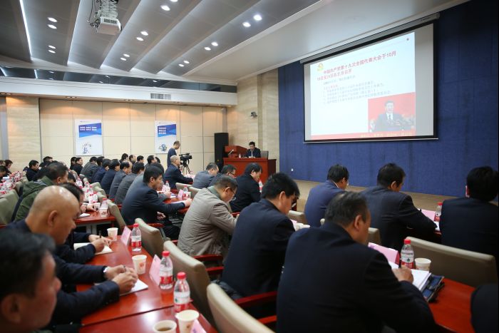 12月1日, 陜西有色集團(tuán)黨的十九大精神宣講團(tuán)在金鉬集團(tuán)舉行宣講報告會。金鉬集團(tuán)黨委書記張繼祥作為陜西有色集團(tuán)宣講團(tuán)成員之一擔(dān)任主講。宣講報告會在金鉬股份大廈十樓會議室舉行,公司副處級以上領(lǐng)導(dǎo)干部和各單位政工部門負(fù)責(zé)人近140參加了宣講報告會。