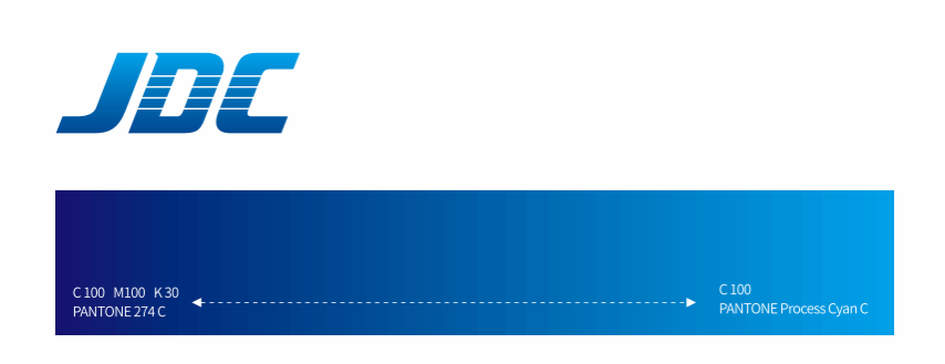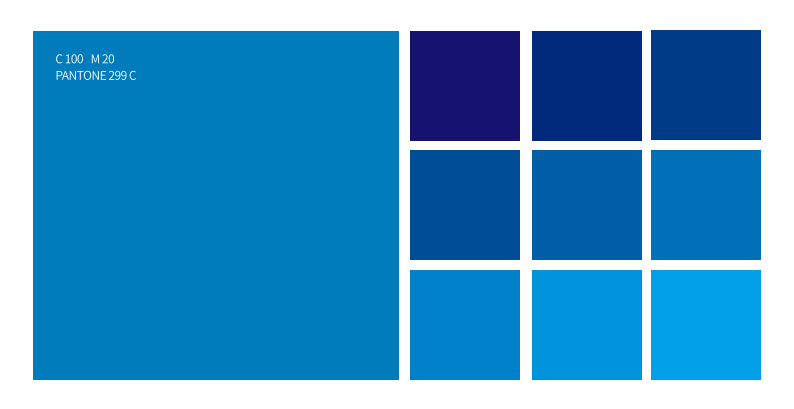 金鉬集團標準色體系從標準色的漸變變色中提取出由深到淺 9 種單色,常用單色為 C100 M20。
